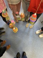 Um dieses Ziel zu erreichen haben wir z.B. schon Vogelfutterglocken für verschiedene Vogelarten aufgehängt, den alten unschönen Bereich vor der Turnhalle von der Stadt einzäunen lassen und eine Grünflächenpatenschaft übernommen, so dass ein kleiner aber feiner Schulgarten in Kooperation mit der Stadt Oberhausen, der Ruhrwerkstatt, Blumen Lohkamp OHG, Hagebaumarkt ZIesak, Gartencenter Dobirr Blotz, Der Baustoff-Mann Schneider KG, Gartencenter flora-point und natürlich mit der atkräftigen Hilfe von tatkräftigen Eltern entstehen konnte. Aber das ist noch nicht alles: die wichtigsten Helfer sind die Schüler*innen der 3. und 4. Klasse, die ihre Ideen und Vorschläge zur Gestaltung des Gartens kreativ, körperlich und geistig einbrachten und weiter einbringen können.